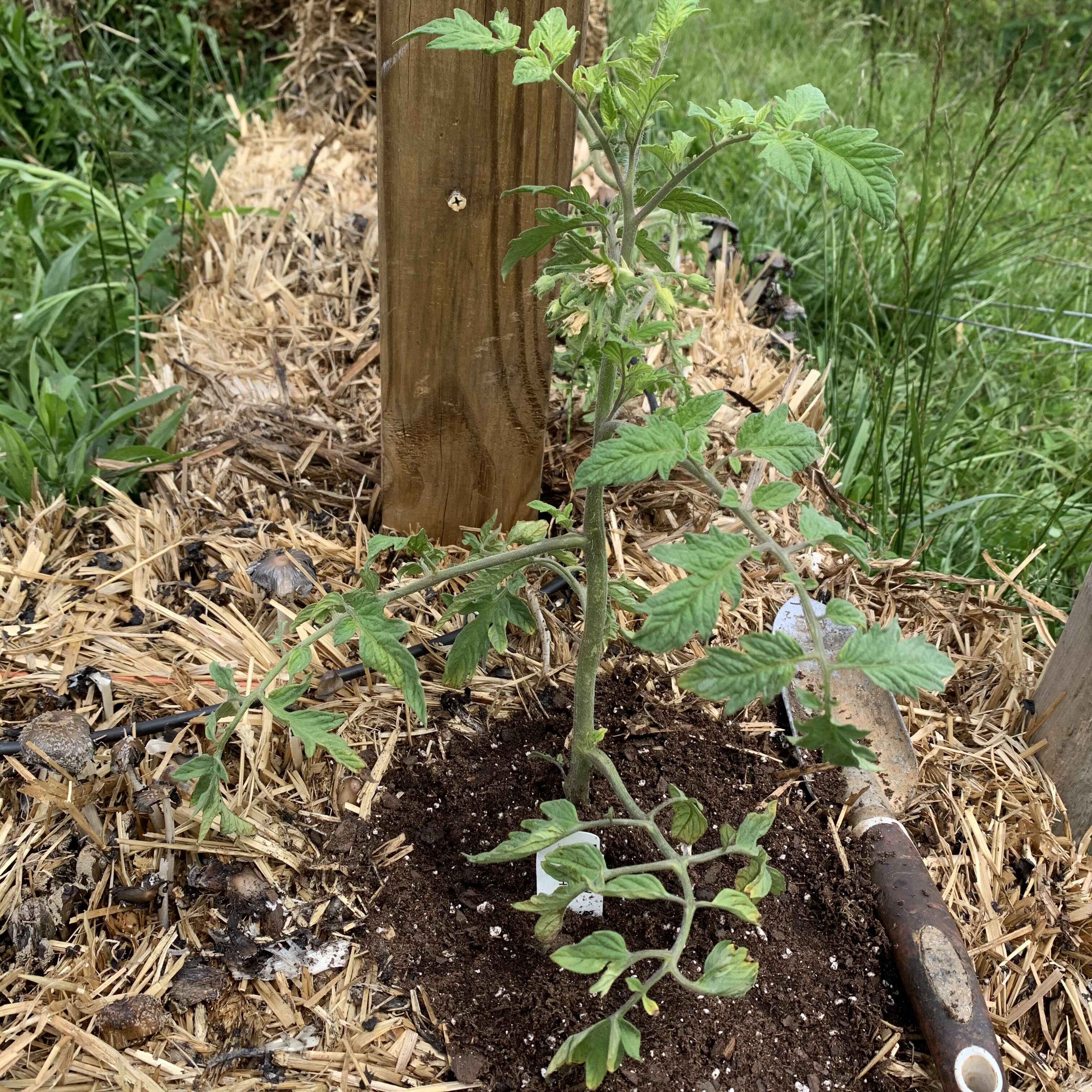 - I found that cutting an L-shaped slit in the weed barrier worked great for planting the bent tomato plants. I cut the long side of each triangle abut an inch from the irrigation tubing and parallel to it. I found that I could estimate how long the first cut should be by lying there plant down and making a wedge that would accommodate it.